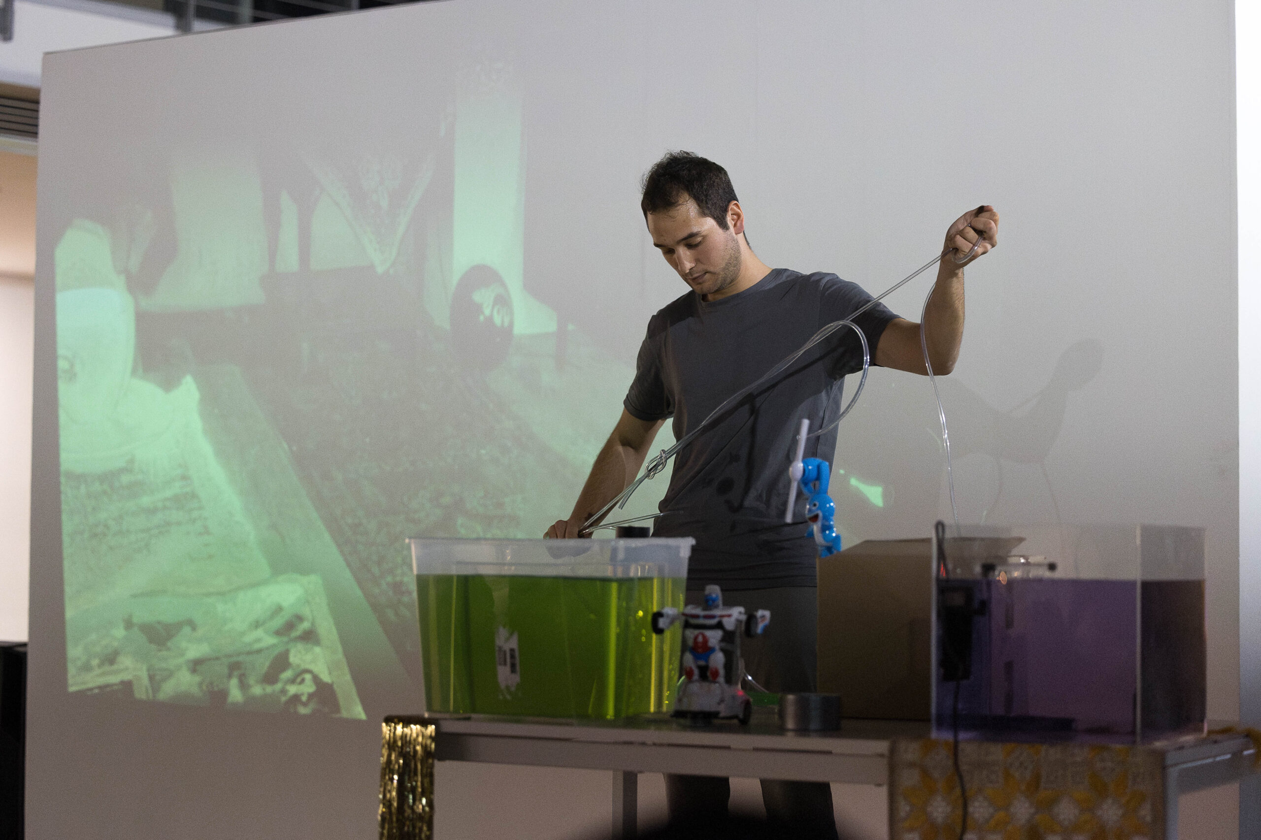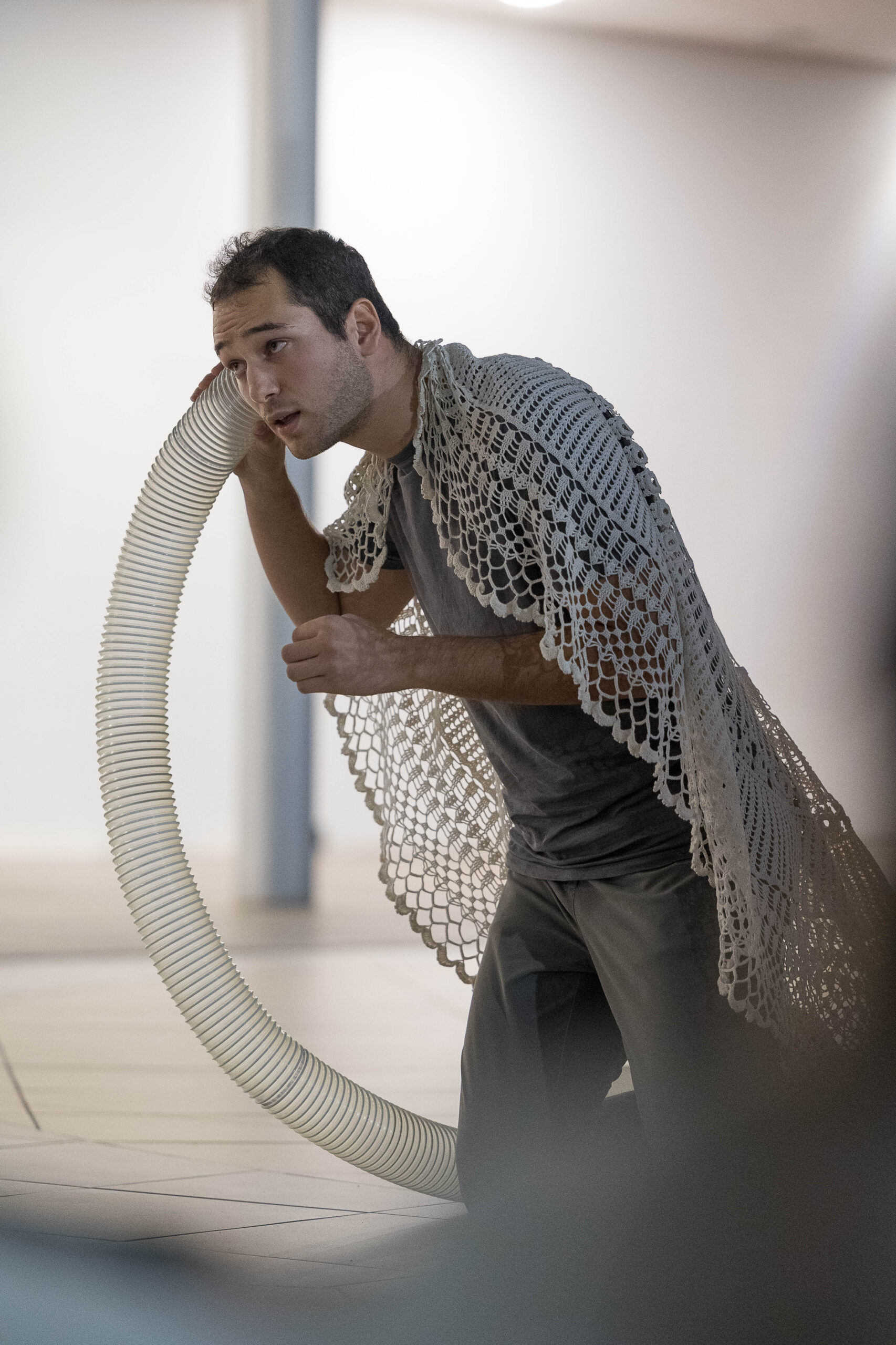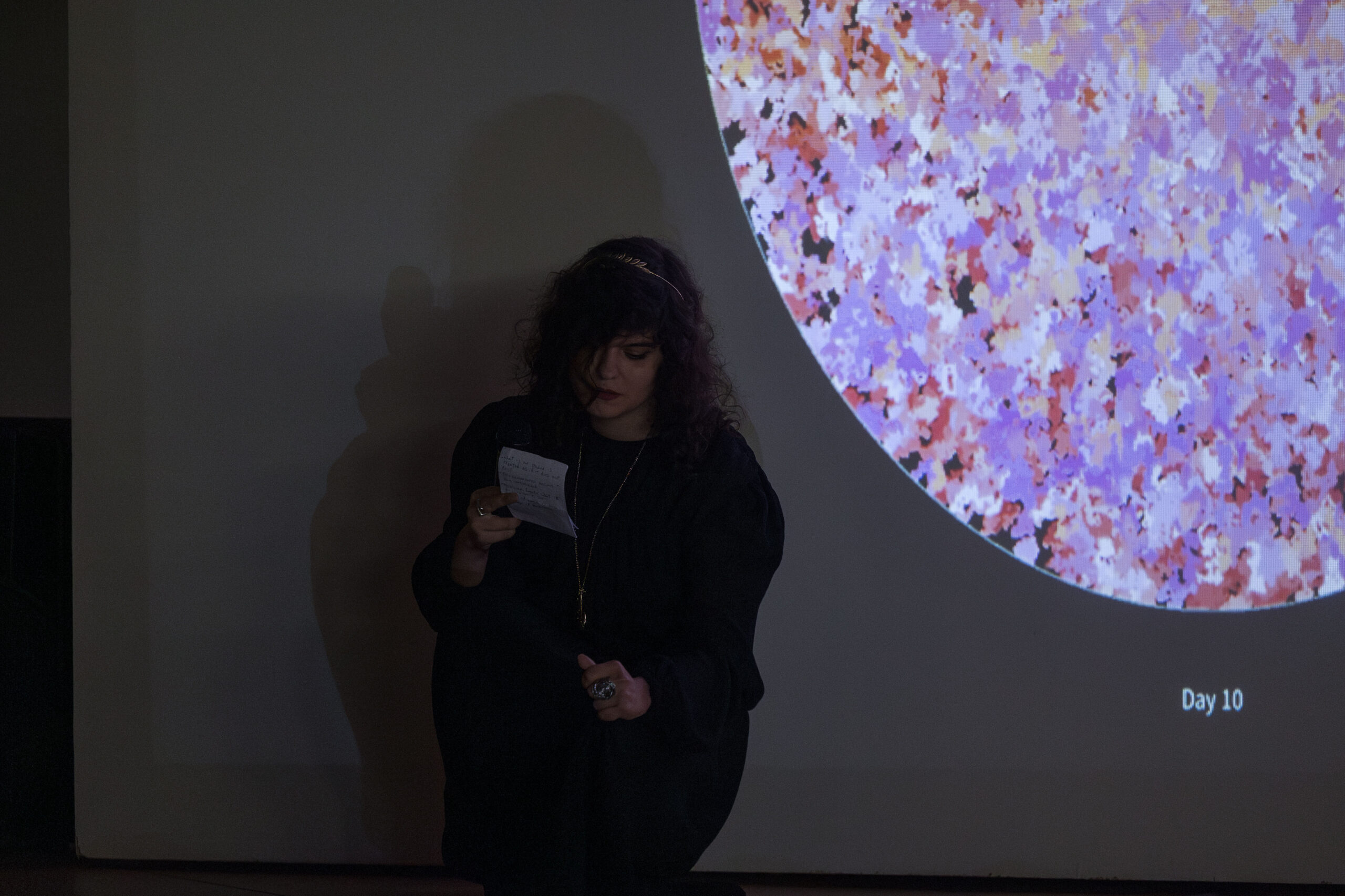As part of the closing event for the TRANSMODULAR exhibition, which opened in June, the invited artists Tina Tilda Amerstorfer, Jana Debnarova, Aleksandar Gabrovski & Sekrit Unzog, Luna Maluna Gri, Alexandra Kransevich, Ida Mariboe Nielsen, and Mehrta Shirzadian presented a series of performative works that unfold between body, voice, materiality, and the digital sphere. The performances combined very personal starting points with collective questions about identity, care, memory, embodied knowledge, and the possibilities of alternative ways of life.